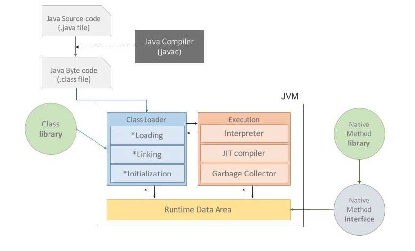JVM이란? Java Virtual Machine. (가상 머신 : 프로그램을 실행하기 위해 물리적 머신과 유사한 머신을 소프트웨어로 구현한 것) - 우리가 작성한 자바 프로그램이 수행되는 프로세스를 의미함. - 다시 말해, java라는 명령어를 통해 애플리케이션이 수행되면, 이 JVM 위에서 애플리케이션이 동작함. JVM은 JAVA와 OS사이에서 중개자 역할을 수행. 그리고 가장 중요한 메모리관리, Garbage Collection을 수행. 왜 자바 가상머신을 알아야 하는가? 사용자가 많아지는 애플리케이션일수록, 한정된 메모리를 효율적으로 사용하여 최고의 성능을 내기 위해 노력해야 한다. 따라서, 메모리 효율성을 위해 메모리 구조를 알아야 하는 것은 필수이다. 자바 프로그램 실행 과정 1. 프로그램이 ..